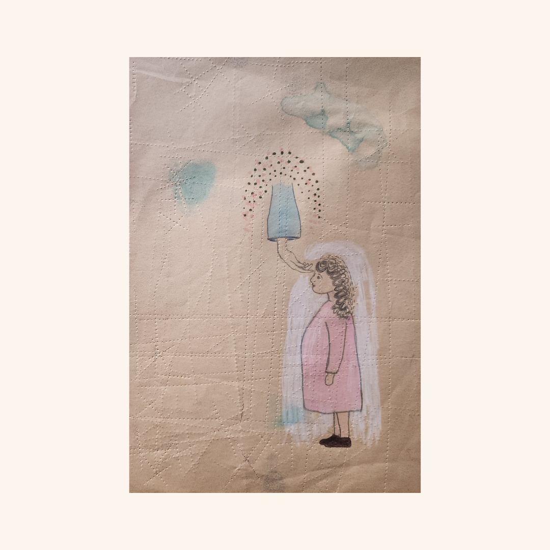 Margo and the Hand Of depicts a young girl who moves through the world accompanied by a divine hand that touches her intermittently.